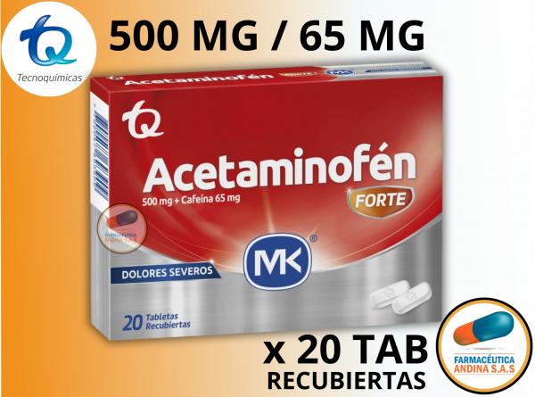 ACETAMINOFEN 500 MG + CAFEINA 65 MG CAJA X 20 TABLETAS (ACETAMINOFEN FORTE) MK