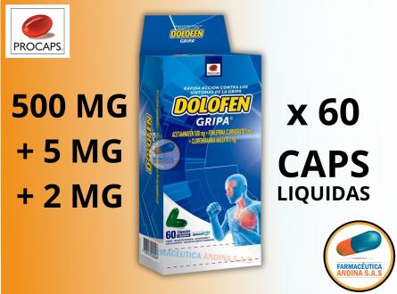 COLMED ANTIGRIPAL ACETAMINOFEN+FENILEFRINA+CLORFENIRAMINA CJ X 60 CAPS (DOLOFEN GRIPA) REF. PROCAPS12149 CANT. 4 Unidades Ver detalles