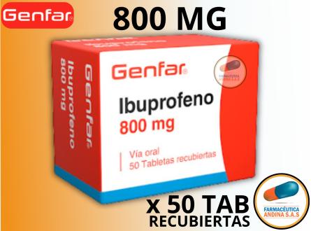 15% GENFAR IBUPROFENO 800 MG CAJA X 50 TABLETAS GENFAR REF. GENFAR05098 CANT. 143 Unidades Ver detalles