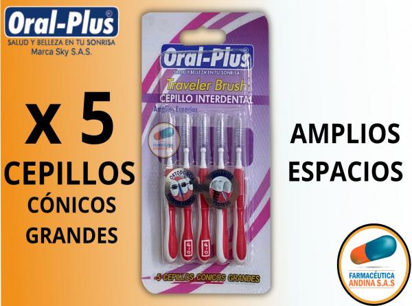 CEPILLO INTERDENTAL AMPLIOS/ESPACIOS PROTESIS PAQUETE X 5 CEPILLOS ORAL-PLUS