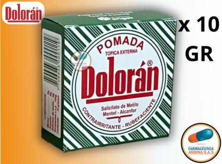 OTROS PROVEEDORES POMADA DOLORAN (SALICILATO DE METILO - MENTOL - ALCANFOR) CAJA X 10 GR HERIGAR REF. HERIGAR011806 CANT. 6 Unidades Ver detalles