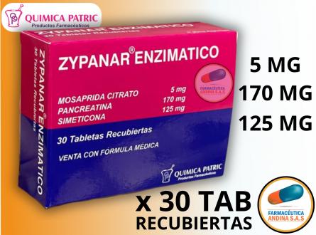 QUIMICA PATRIC MOSAPRIDA 5 MG + PANCREATINA 170 MG + SIMETICONA 125 MG MG CJ X 30 TAB (ZYPANAR ENZIMATICO) QUIMICA REF. QUIMICA12066 CANT. 3 Unidades Ver detalles